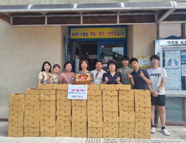 이날 기부받은 복숭아는 덕연동 경로당 36개소 및 홀몸어르신 44세대, 그리고 덕연동 마중물보장 협의체 특화사업인 마중물 냉장고로 전달됐다.