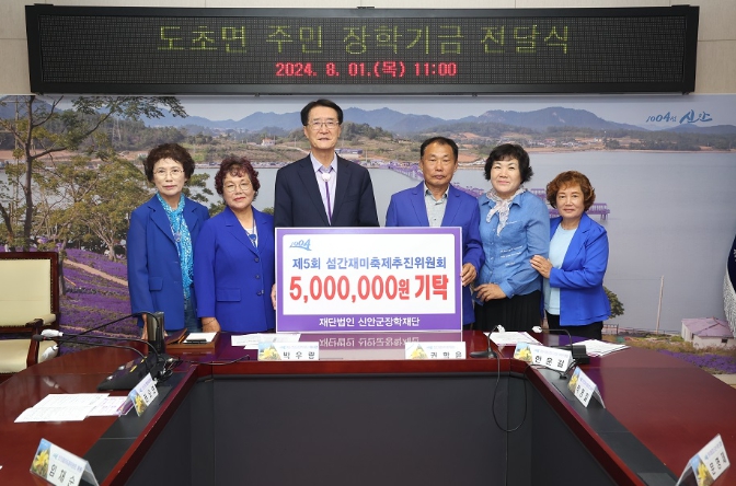 권학윤 위원장은 “축제추진위원회 회원들뿐 아니라 주민들이 한 마음 한뜻으로 노력하여 얻은 수익금을 장학기금으로 사용하게 되어 기쁘다.”라며 “신안군 학생들의 꿈을 응원하며 지역 발전에 이바지할 수 있는 모범 단체가 될 수 있도록 노력하겠다”라고 기탁 소감을 밝혔다.