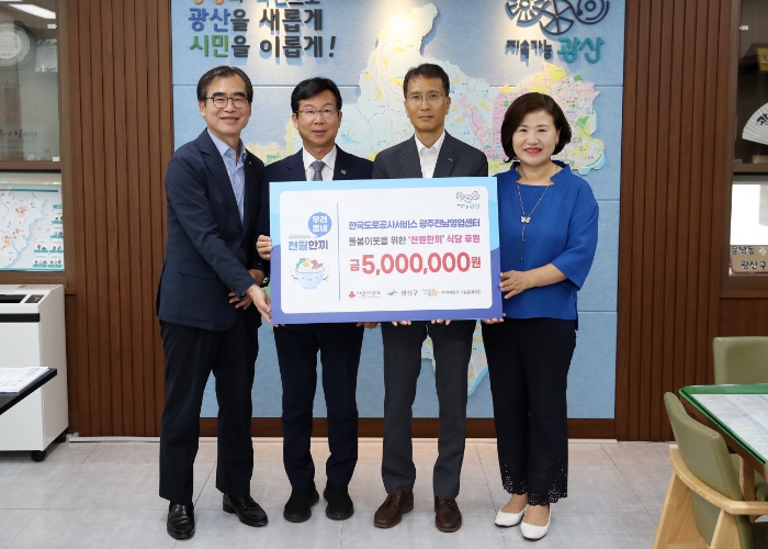 ![]() 한국도로공사서비스 광주전남영업센터 ‘우리동네 천원한끼’ 후원금 전달식 |