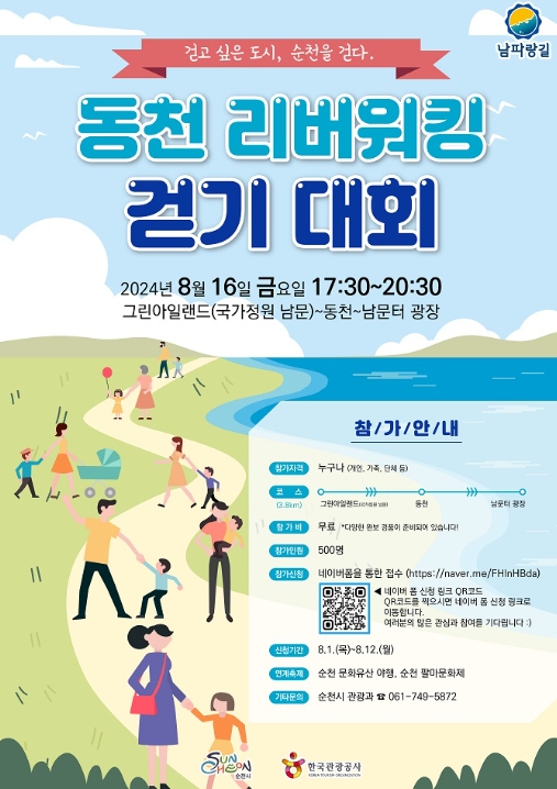![]() 순천시, '동천 리버워킹 걷기 대회' 참가자 모집 |