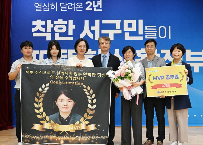서구 MVP선발위원회는 “김 팀장은 금호1동 마을자치팀장으로 일하면서 ‘상생마을’ 활성화를 위해 현장 중심의 사업을 주도적으로 추진했으며 4개동을 하나로 묶는 ‘함께하는 생활권’ 조성에도 기여한 바가 크다”고 선정 이유를 밝혔다.