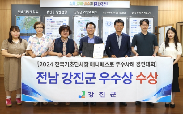 ![]() 강진군이 사)한국매니페스토실천본부와 경남연구원이 공동 주최한 ‘2024 전국 기초단체장 매니페스토 우수사례 경진대회’에서 우수상을 수상했다. |