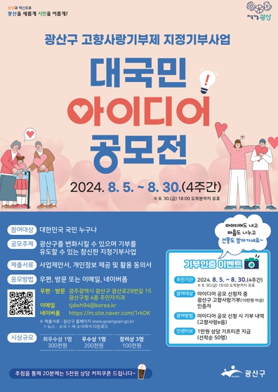 ![]() 광주광역시 광산구 고향사랑기부제 지정기부사업 아이디어 공모 |