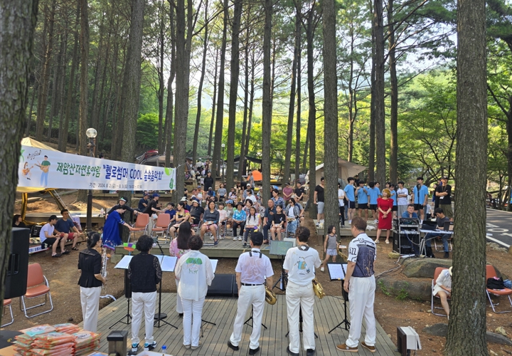 이번 숲속음악회는 “뜨거운 여름을 힐링하면서 이기자”라는 주제로 제암산자연휴양림 내 계곡 물놀이장과 소나무숲 야영장에서 색소폰, 통기타, 퓨전 장구 연주와 트로트 가수 공연 등이 진행됐다.