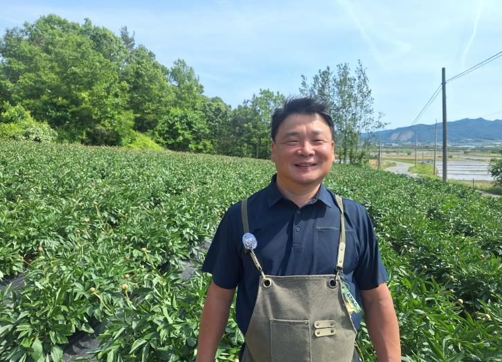 ![]() 정한규 대표가 자신의 작약 농장에서 포즈를 취하고 있다. |