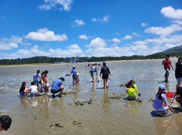 ![]() 자은 둔장 어촌체험마을에서 갯벌 생물 체험학습하는 모습 |