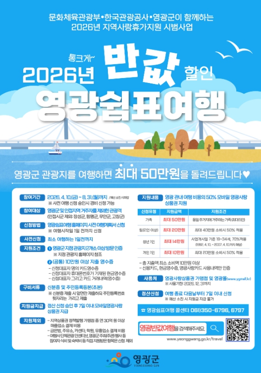 ![]() , 「2026년 반값 할인 영광 쉼표 여행」 4월 신청 조기 마감 |