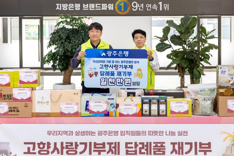 특히 고향사랑기부제를 통해 제공받은 약 1천만원 상당의 답례품을 광주·전남 지역 사회복지시설에 다시 기부해, 지역과 함께 상생하고 나눔의 가치를 실천하는 지역 대표은행으로서의 역할을 다시 한번 되새기는 계기를 마련했다.