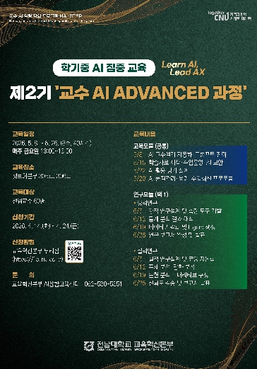 ![]() 학기중 AI 집중 교육 ‘제2기 교수 AI ADVANCED 과정’ |