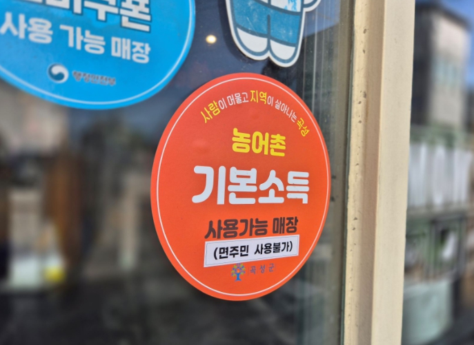 ![]() 기본소득 이용 가능 매장 안내 표지 |