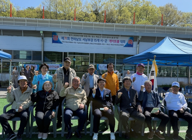 ![]() 2026 전라남도 서남부권 게이트볼대회 참석자들의 단체 사진 |