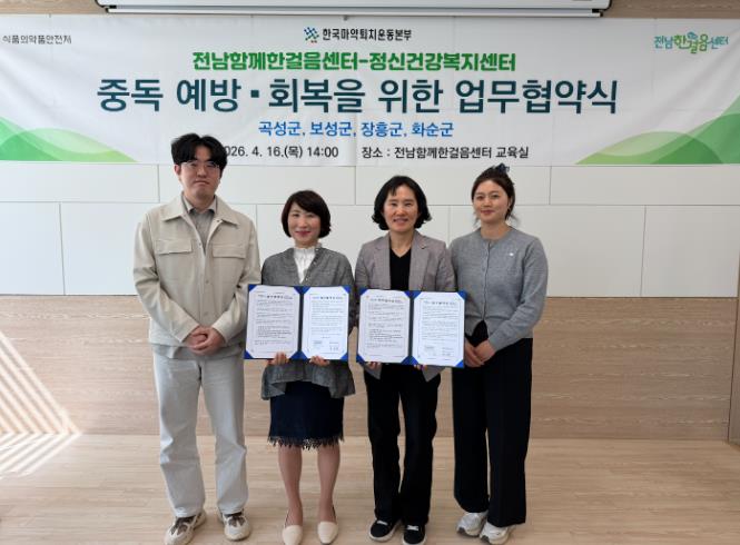 ![]() 화순군정신건강복지센터와 전남함께한걸음센터의 업무 협약식 모습 |