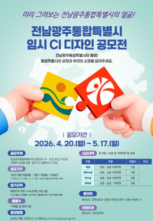 이번 공모전은 1986년 행정구역 분리 이후 40년 만에 재결합해 오는 7월 공식 출범을 앞둔 ‘전남광주통합특별시’의 첫 상징을 국민과 함께 만들어간다는 점에서 의미가 크다.