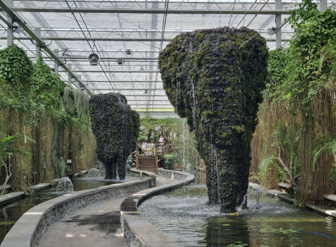 올해 수생식물관은 내부 아치형 구조에 식재되어 있던 틸란드시아 일부를 고목나무로 이식해 더 자연스러운 정글 분위기를 연출했으며, 식물과 구조물이 어우러진 입체적인 공간으로 재구성했다.