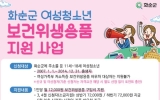 화순 온라인뉴스팀2025. 02.28[뉴스앤저널]화순군은 28일 여성 청소년의 건강권 보장과 권익 증진 실현을 위한 보건위생용품 지원사업을 추진한다고 밝혔다. 지원 대상은 화순군에 주소를 둔 11세 부터 18세(2007년~2014년 출생) 여성 청소년이다. 신청 대상은 해당 나이에 도달한 신규자 및 그간 미신청자에 한한다. 기존 신청자는 자격요건 해당 시 별도 신청 없이 바우처가 지급되며, 특히 여성가족부로부터 여성 청소년 보건위생용품을 지원받는 청소년은 중복 지원에 해당하는 이유로 사업 대상에서 제외된다. 지원 금액은 1인당 월 1만 2,000원으로 바우...