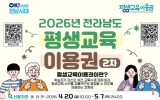 여수 이유빈 기자2026. 04.21[뉴스앤저널] 여수시는 시민의 자기계발과 자아실현을 지원하기 위해 ‘제2차 평생교육이용권’ 참여자를 모집한다고 밝혔다. 평생교육이용권은 학습자가 전국 이용권 사용기관으로 등록된 교육기관에서 강의를 온라인 또는 대면으로 수강할 수 있도록 수강료와 교재비를 지원하는 제도로, 1인당 연간 35만 원이 채움카드로 지급한다. 모집 대상은 여수시에 주소를 둔 19세 이상 성인으로 ▲기초생활수급자 및 차상위계층을 포함한 일반 272명 ▲65세 이상 42명 ▲30세 이상 AI·디지털 분야 54명 등 총 368명이다. 신청 기간은 4월 20일...