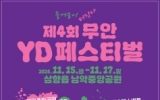 무안 온라인뉴스팀2024. 11.04[뉴스앤저널]전남 무안군은 청년이 함께 꿈꾸고 도전하는 무안YD페스티벌을 오는 15일부터 17일까지 3일간 무안군 남악중앙공원 일원에서 개최한다. ‘즐거움이 터진다! 무안 YD페스티벌!’이라는 주제로 열리는 축제는 초·중·고등학교 12년간 앞만 보고 달려온 수험생과 치열한 취업난 속에서 꿈을 향해 나아가는 청년들에게 재충전의 시간을 제공하고 청년들이 서로 소통하며 새로운 에너지를 얻고 열정을 다짐할 수 있는 공간을 제공하고자 마련했다. 축제는 ▲15일 개막식과 개막축하공연(루시, 김나영), ▲16일 거리 퍼레이드, 1대1 댄스배...