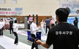 서구 온라인뉴스팀2024. 11.01[뉴스앤저널]광주광역시 서구는 2일 염주체육관 펜싱훈련장에서 서구청 펜싱팀과 함께하는 펜싱교실을 개최했다. 2022년부터 운영된 펜싱교실은 주민들이 평소 접하기 어려운 펜싱이라는 스포츠를 체험할 수 있는 기회를 제공하기 위해 마련됐으며, 특히 광주 서구청 펜싱팀인 국가대표 강영미, 김재원 선수 등의 재능기부로 운영되어 큰 호응을 얻고 있다. 특히 올해 펜싱교실은 4월부터 11월까지 ▲꿈나무(어린이)반 ▲펜린이(성인)반 ▲가족반으로 참여 대상을 나눠 그에 적합한 교육을 진행해 만족도가 매우 높았다. 꿈나무(어린이)반은 4, 6월...