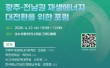 전라남도 민슬기 기자2026. 04.16[뉴스앤저널]기후에너지환경부 영산강유역환경청은 ‘대한민국 녹색대전환(K-GX) 국제주간 행사’를 맞아, 4월 22일 전라남도 여수시 유탑마리나호텔에서 (재)녹색에너지연구원과 함께'광주·전남권 재생에너지 대전환을 위한 포럼'을 개최한다고 밝혔다. 이번 포럼은 기후위기 대응과 탄소중립 실현을 위한 재생에너지 확대 필요성이 커지는 가운데, 광주·전남 지역의 특성을 반영한 재생에너지 전환 전략을 모색하기 위해 마련됐다. 행사에는 기후부를 비롯하여 광주광역시, 전라남도 등 지방정부, 에너지 유관기관, 학계 전문가 및 시민 등 다양...