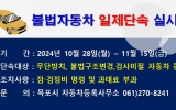 목포 온라인뉴스팀2024. 10.23[뉴스앤저널]목포시 자동차등록사무소는 시민 안전과 자동차 운행 질서 확립을 위해 오는 28일부터 11월 15일까지 불법자동차 일제단속을 실시한다. 이번 ‘불법자동차 일제단속’은 목포시와 목포경찰서, 한국교통안전공단과 합동으로 진행하는 것으로, 민원 빈번 발생 지역을 중점으로 단속한다. 단속 대상은 ▲도로나 타인의 토지 및 공영주차장 등에 장기 주차된 자동차 ▲불법 개조(튜닝)한 자동차 ▲안전기준 위반 자동차 ▲배기 소음이 심한 이륜차 ▲검사 미필 자동차 및 의무보험 미가입 자동차 등의 자동차 관리법 위반 차량이다. 특히, 이...