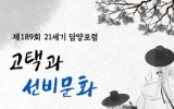 [뉴스앤저널]인문학교육·전통정원특구 담양군이 군민을 위한 열린 강좌 ‘21세기 담양포럼’을 오는 10월 29일 오후 4시 담양문화회관에서 개최한다. 이번 강연은 10월 문화의 달을 맞아 가사문학과 정자문화를 기반으로 한 인문학의 고장인 담양의 선비문화에 대해 이해하고자 기획됐다. 국가균형발전위원회 문화관광전문위원을 초청해 진행하는 강연은 소극적인 선비 인식에서 벗어나 조선 왕조의 의사결정을 주도한 적극적인 선비 인식을 제기하고, 고택에 담긴 조선시대 선비문화를 통해 우리 역사와 문화를 제대로 알고 내일을 설계하는 시간으로 채워...