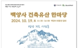 전라남도 온라인뉴스팀2024. 10.18[뉴스앤저널]장성군이 19일 천년고찰 백양사에서 ‘건축유산 한마당 – 법당 지은 사람들’ 행사를 연다. 장성군과 국가유산청이 주최하고 백양사, 광주문화나루가 주관하는 ‘건축유산 한마당 – 법당 지은 사람들’은 전통산사 문화유산 활용사업의 일환으로 마련된 문화‧예술 프로그램이다. 19일 토요일 오후 1시 대웅전 앞에 마련된 특설무대에서 관객과 만난다. 첫 순서인 ‘사찰 건축 토크’에선 천득염 전남대학교 석좌교수와 무공 주지스님이 ‘오늘, 다시 만나는 백양사 대웅전’이라는 주제로 백양사 대웅전에 숨겨진 의미와 건축 해설을 들려준다....