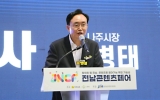 여수 온라인뉴스팀2024. 10.10[뉴스앤저널]전라남도는 ‘콘텐츠로 열어가는 무한 가능성, 전남!’이란 주제로 나주 영산강 정원에서 10일 전남 콘텐츠페어 개막식을 개최했다. 올해 처음 열린 전남 콘텐츠페어는 도민에게 다양한 콘텐츠 체험 기회 제공 및 도내 콘텐츠 기업의 성장과 발전을 위해 13일까지 열린다. 개막식은 명창환 전남도 행정부지사, 윤병태 나주시장, 윤명희 전남도의회 경제관광문화위원장, 이인용 전남정보문화산업진흥원장 등이 참석한 가운데 LED 가상현실(VR) 드로잉 주제공연, 전남 콘텐츠 혁신대상 시상, 비전 선포식 등으로 진행됐다. 전남 콘텐츠페...