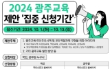 동구 온라인뉴스팀2024. 10.01[뉴스앤저널]광주시교육청이 광주교육 발전을 이끌 아이디어를 공모한다. 시교육청은 1일부터 13일까지 국민과 공무원을 대상으로 ‘2024년 하반기 광주교육 제안 집중 신청 기간’을 운영한다. 이번 제안은 광주교육 정책과 행정제도에 대한 시민, 학부모 등의 의견을 듣기 위해 마련됐다. 제안 주제는 ▲광주교육 5대 주요시책(다양성교육, 책임교육, 공정교육, 미래교육, 상생교육) 및 3대 역점과제(다양성을 품은 실력향상, 미래로 가는 AI교육, 모두가 동행하는 시민협치) 구현을 위한 아이디어 ▲기타 광주교육 발전 방안 등이다. 제...