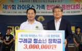 전라남도 온라인뉴스팀2024. 09.23[뉴스앤저널]전남 구례군은 국제라이온스협회 355-B3(전남동부)지구가 지난 21일 화엄사 일원에서 열린 제19회 라이온스 가족 한마음 등반대회에서 구례군 청소년들을 위한 장학금 300만 원을 기탁했다고 밝혔다. 국제라이온스협회 355-B3(전남동부)지구는 69개 클럽 3,000여 명의 회원이 활동하고 있으며, 해마다 집수리 사업, 이동 목욕, 헌혈, 김장 봉사 등 다양한 봉사활동을 이어가고 있다. 이날 열린 한마음 등반대회에는 배혁주 총재를 비롯한 지역위원장, 회원 및 가족들이 참석해 화합과 우정을 다지는 뜻깊은 시간을 보냈다...