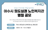 여수 온라인뉴스팀2024. 09.20[뉴스앤저널]여수시는 관문동 861번지 일원에 건립 예정인 노인복지관의 명칭을 오는 10월 4일까지 공모한다. 시는 이번 공모와 관련하여 노인복지관의 기능과 특징에 부합하는 누구나 부르기 쉽고 친근한 이름을 선별하되, 여수시 원도심권의 특색을 내포한 창의적인 명칭을 모집한다고 설명했다. 주소지와 관계없이 공모에 관심 있는 누구나 응모 가능하며, 참여를 원하는 사람은 여수시청 누리집 공지사항에서 신청서를 내려받아 작성한 뒤 팩스 또는 전자우편으로 제출하면 된다. 시는 내부 심사와 시민 선호도 조사를 거쳐 당선작을 선정하고, 10...