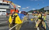 해남 온라인뉴스팀2024. 09.11[뉴스앤저널]해남소방서는 10일 해남우슬체육관에서 전기차 화재 대응을 위한 화재진압장비 시연회를 개최했다고 밝혔다. 이번 시연회는 최근 많은 수의 전기차가 상용화되면서 이와 관련한 사건·사고가 빈번해져 전기차 화재 발생 시 화재·피해 확대를 방지하고 진압대원의 대응역량 강화 및 화재진압장비 확보를 위해 마련됐다. 시연회는 폐차량에 화재 발생을 가정하여 관창으로 차량 내·외부에 방수하여 냉각 효과를 극대화한 이후, 질식소화포를 활용하여 산소를 차단하고 간이소화수조(워터트랩)를 활용해 화재를 진화하는 순서로 진행됐다. 최진석 서...