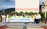 화순 온라인뉴스팀2024. 09.11[뉴스앤저널]화순군(군수 구복규)은 11일 화순초등학교 등굣길 주변에서‘아이 먼저’ 어린이 교통안전 캠페인을 펼쳤다고 밝혔다. 화순군의회, 화순경찰서, 화순교육지원청, 화순초등학교, 안전보안관, 녹색어머니회, 모범운전자회 등 8개 기관단체 100여 명이 어린이 보호구역 내에서, 아이들이 안전하게 보행할 수 있도록 운전자의 횡단보도 앞 일단 멈춤 배려 문화를 확산하기 위해 합동으로 실시했다. 캠페인 참여자들은 '아이 먼저' 리플릿과 홍보 물품을 배포하며 ▲어린이보호구역 내 규정 속도 지키기 ▲불법 주·정차 금지 ▲무단 횡단하지 않...