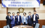 광양 온라인뉴스팀2024. 09.09[뉴스앤저널]순천시의회는 전남동부권 문화예술 상생발전을 위한 담론의 장을 마련하고, 지역 동반성장의 방안을 제시하고자 ‘순천시의회 전남동부권 문화예술 상생발전 연구모임’을 결성하고 지난 6일 제1차 간담회를 개최했다. 이날 간담회에서는 전남동부권 문화예술분야 현황을 비교·분석하여 순천시와 인근 지자체가 앞으로 나아가야 할 방향을 설정하고, 의원 역량강화를 위한 세미나 등 향후 추진계획에 대하여 논의하는 시간을 가졌다. 나안수 연구모임 회장은 “연구모임에서 제시된 다양한 의견과 활동을 바탕으로 우리 시 문화예술 분야의 잠재력을 파...
