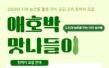 광주광역시 온라인뉴스팀2024. 09.09[뉴스앤저널]광주광역시농업기술센터는 지역 대표 농산물인 애호박의 소비 촉진과 색다른 조리법 보급을 위해 ‘지역농산물 활용가치 공감 교육’ 참가자를 11일부터 모집한다. 모집 대상은 광주시민 48가족(기수별 8가족, 가족당 2~4명)이며, 온라인 ‘광주광역시바로예약’ 사이트를 통해 선착순으로 신청하면 된다. 교육은 오는 28일부터 총 6기수로 나눠 진행되며, 지역 농산물 탐구활동과 애호박 두부 스테이크, 스콘 등 요리체험을 한다. 특히 이번 교육은 직접 농사를 짓는 여성 농업인들이 강사로 나서 도시와 농촌 간 소통의 의미를 더할 ...