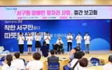 광주광역시 온라인뉴스팀2024. 08.29[뉴스앤저널]광주광역시 서구는 29일 서구청 들불홀에서 중증장애인 근로자와 가족, 전담인력 등 40여 명이 참석한 가운데 ‘서구형 장애인일자리 사업 중간보고회’를 개최했다. 서구형 장애인일자리는 광주 5개 자치구 중 유일하게 서구에서 2년 연속 추진하고 있는 장애인공공일자리 사업이다. 서구는 지금까지 4억4000만원의 자체예산을 편성해 취업장벽이 높은 중증장애인에게 물질적·정신적 노동가치를 창출할 수 있는 기회를 제공하고 있다. 특히 지난 4월에 선발된 중증장애인 근로자 20명은 매월 56시간씩 권익옹호활동, 문화예술활동, 사회...