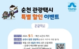 순천 온라인뉴스팀2024. 08.29[뉴스앤저널]순천시는 축제가 있는 가을을 맞아 대중교통을 이용하는 관광객들에게 맞춤형 관광편의를 제공하기 위해 관광택시 요금의 50%를 할인하는 이벤트를 진행한다고 밝혔다. 오는 9월부터 요금의 50% 할인을 적용하면 3시간 코스는 8만원에서 4만원으로, 5시간 코스는 12만원에서 6만원으로, 8시간 코스는 18만원에서 9만원으로 낮아져 관광택시를 이용하는 관광객의 요금 부담이 대폭 줄어든다. 이용방법은 여행 시작 5일전까지 순천시 바로예약 누리집 또는 콜센터를 통해 예약하고 사전 신청서를 제출하여야 하며, 택시관광 후 이용객이...