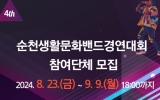 순천 온라인뉴스팀2024. 08.29[뉴스앤저널](재)순천문화재단은 오는 10월 4일부터 5일까지 조례호수공원 일원에서 개최하는 제5회 순천생활문화페스티벌 참여단체를 공개 모집한다. 먼저 순천에서 활동 중인 생활문화동호회이면서 페스티벌 기간 내 참여할 공연 및 전시・체험단체를 8월 23일부터 9월 5일까지 모집한다. 선정규모는 ▲공연 10팀 내외 ▲체험·전시 10팀 내외이며, 공연지원금 및 전시・체험비를 20만원에서 40만원까지 지원받을 수 있다. 또한, 순천에서 활동 중인 아마추어밴드를 대상으로 순천생활문화밴드경연대회 참여단체도 모집한다. 모집기간은 8월...