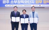 광주광역시 온라인뉴스팀2024. 08.27[뉴스앤저널]광주광역시는 27일 김대중컨벤션센터에서 광주 자율주행차 소부장(소재‧부품‧장비) 특화단지 성공 추진을 위해 선도기업인 ㈜DH오토웨어, KT와 업무협약을 체결했다. 이는 지난해 9월 소부장 특화단지 추진단 출범과 함께 선도기업인 LG이노텍, 한국알프스와 협약을 맺은 데 이은 확대 조치다. 이날 협약식에는 강기정 시장을 비롯해 이정권 DH그룹 회장, 지태수 DH오토웨어 대표, 김용남 KT 전남전북법인고객본부장과 박준희 상무 등이 참석했다. 협약에 따라 이들 기업은 광주 소부장 선도기업으로 참여하면서 지역 부품기업의 미...