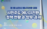 순천 온라인뉴스팀2024. 08.20[뉴스앤저널]순천시 에너지센터는 순천시 지속가능발전협의회와 함께 오는 26일 오후 2시 순천시 생태비즈니스센터 컨퍼런스 홀에서 ‘시민주도 에너지전환 정책 현황과 향후 과제’라는 주제로 순천시 에너지전환 포럼을 개최한다. 이번 포럼은 2050 탄소중립 에너지 전환 가속화를 위해 시민주도 에너지전환 정책 현황과 시민이 주도하는 에너지전환 확산을 위한 방안을 모색하고자 전문가, 행정, 시민단체, 시민들이 함께 참여해 논의하는 자리로 마련됐다. 주제 발제로 이유진 녹색전환연구소 소장이 ‘시민주도 에너지전환 정책 현황과 지역기반 확대 ...