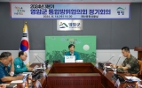 스포츠 온라인뉴스팀2024. 08.20[뉴스앤저널]영암군이 14일 군청 전시종합상황실에서 ‘2024년 통합방위협의회 정기회의’를 열고, 육군 제8539부대 3대대 등 민·관·군·경 합동 을지연습 준비 상황 등을 점검했다. 우승희 통합방위협의회 의장은 “기관·사회단체의 긴밀한 협조체제로 비상사태 발생시 영암군민의 생명과 재산을 보호하는 일에 최선을 다하자”고 당부했다. 통합방위협의회 참석 민·관·군·경은 국가 긴급상황 발생 시 신속하게 대처하는 공조 체계 확립 방안도 논의했다.
