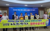 진도 온라인뉴스팀2024. 07.31[뉴스앤저널]순천시는 순천 쌀 대표 브랜드인 "나누우리"가 2024년 전남 10대 고품질 브랜드 쌀 시상식에서 “최우수상”을 수상했다고 밝혔다. 7월 31일 전남도청 서재필실에서 전남지사, 조합장 및 RPC 대표 등 30여명의 관계자가 참석한 가운데 진행된 시상식에서는 최우수상 상패와 25백만원의 인센티브 사업비 수여, 기념촬영 등으로 행사가 진행됐다. '전남 10대 고품질 브랜드 쌀 선정'은 전라남도가 지속적인 품질관리 도모와 전남 쌀 판매 활성화를 위해 2003년부터 농산물품질관리원, 전남농업기술원, 한국식품연구원 등 6개 ...