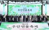 [뉴스앤저널]단일 연꽃 축제로는 전국 최대 규모인 제27회 무안연꽃축제가 25일 무안회산백련지 일원에서 화려한 막을 올렸다. ‘내 인생의 화양연화!’라는 주제로 28일까지 4일간 열리는 축제는 연꽃의 아름다움과 청정 자연환경이 주는 휴식과 힐링을 통한 다채로운 즐거움을 선사한다. 이날 개막식은 새하얀 백련과 초록빛 연잎이 가득한 백련지를 내려다 보이는 주무대에서 박문재 무안군축제추진위원회 위원장의 개막 선언과 함께 시작됐다. 이어서 무안·해남·영암의 농축협 8개 기관의 고향사랑 기부제 상호 기부 기탁식과 모델 박세라·전 구...
