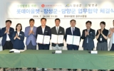 스포츠 온라인뉴스팀2024. 07.24[뉴스앤저널]담양군이 지역 농특산물 판매를 위해 국내 최대 대형 쇼핑몰과 업무 협약을 체결했다. 담양군(군수 이병노)은 지난 24일 광주광역시 롯데아울렛 수완점에서 열린 ‘도농교류 활성화 및 지역상생 협약식’을 통해 이병노 담양군수와 김한종 장성군수, 문중오 롯데아울렛 광주수완점장이 3자 협약을 맺고 지역 농특산품 판매 확대와 상생발전을 위한 협력체계 구축에 손을 맞잡았다고 밝혔다. 협약을 통해 군은 9월 초에 롯데아울렛 수완점 야외광장에서 ‘추석맞이 직거래 장터’를 열고 지역의 우수 농특산물을 판매하며, 롯데온www.lot...