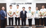 [뉴스앤저널]김동근 의정부시장이 7월 16일 최근 국내외 대회에서 눈부신 활약을 펼친 의정부시청 직장운동경기부 테니스팀을 격려했다. 시청 테니스팀은 최근 ‘하나증권 제3회 대한테니스협회장배 전국테니스대회’와 ‘ITF 텐진 국제 대회’를 성공적으로 마무리했다. 이날 김현승 코치와 소속 선수인 위휘원, 정영석, 임희래, 한찬희 선수가 시장실을 방문해 김동근 시장과 환담을 나눴다. 시청 테니스팀은 ‘대한테니스협회장배 전국테니스대회’에서 위휘원 선수가 여자 단식 우승, 여자 복식 준우승, 혼합 복식 3위를 차지했다. 임희래 선수...