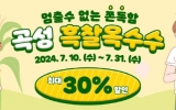 곡성 온라인뉴스팀2024. 07.12[뉴스앤저널]곡성군 온라인 쇼핑몰인 ‘곡성몰’이 7월 10일부터 31일까지 3주간 ‘멈출 수 없는 쫀득함, 곡성 흑찰옥수수 최대 30% 할인’기획전을 진행하고 있다. 이번 기획전을 통해 소비자들은 생옥수수와 냉동 옥수수 두 종류를 저렴한 가격에 구매할 수 있다. 생옥수수는 주문이 들어온 당일 수확해 속껍질을 남긴 채 깔끔하게 손질 후 구매 고객께 배송한다. 냉동 옥수수는 수확 당일 전통 방식으로 가마솥에 삶은 후 영하 40도로 급속 냉동해 배송한다. 찜기나 전자레인지를 이용하여 조리하면 갓 쪄낸 듯한 쫀득하고 찰진 흑찰옥수수의 맛...