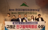 연예 온라인뉴스팀2024. 07.09[뉴스앤저널]전남 구례군이 지난 9일 고양시 킨텍스에서 열린 제29회 한국지방자치경영대상에서 ‘인구활력특별상’을 수상했다. 사)한국공공자치연구원에서 주최한 이번 시상식은 지방자치단체의 지역발전 성과를 평가하여 우수 사례를 장려하고 전파하기 위해 매년 개최되고 있다. 올해 시상식에는 더불어민주당 이개호 국회의원이 참석했으며, 이달곤 전 행정안전부 장관이 심사위원장을 맡아 더욱 성황리에 치러졌다. 이번에 구례군이 수상한‘인구활력특별상’은 전국 지자체 중 1개 지자체에만 주는 특별상으로, 인구 감소 문제를 해결하고 지역 경제를 활성...