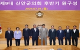 장성 온라인뉴스팀2024. 07.01[뉴스앤저널]신안군의회는 7월 1일 제321회 임시회를 열고 제9대 후반기 신안군의회를 이끌어 나갈 의장단을 구성했다. 이날 선거는 9명의 의원 전원이 출석한 가운데 무기명 투표로 진행됐으며, 의장에는 만장일치로 이상주 의원(압해, 자은, 암태)이 선임됐고, 부의장에는 김기만 의원(지도, 증도, 임자)이 각각 선출됐다. 또한, 의회운영위원장에는 김용배 의원(박용찬, 안원준, 김혁성, 고인숙), 행정복지위원장에는 권오연 의원(김기만, 안원준, 김용배), 산업건설위원장에는 최춘옥 의원(박용찬, 김혁성, 고인숙)을 선출하면서 후반기 ...