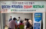 담양 온라인뉴스팀2024. 07.01[뉴스앤저널]전남 함평군 나산면이 1일 광주 서민금융진흥원과 협력해 용수경로당에서 금융기관 방문이 어려운 주민을 위한 ‘찾아가는 보건복지상담소’를 운영했다. 이번 상담소에서는 온라인 서비스 이용이 쉽지 않은 어르신을 위해 광주 서민금융진흥원에서 ‘찾아가는 독거노인 휴면재산 조회·지급 서비스’를 추진했다. 현재 전체 휴면재산 중 65세 이상 고령층이 보유한 금액이 21%에 달하는 것으로 알려졌다. 한편, 이날 찾아가는 휴면재산 조회‧지급서비스와 병행해 스트레스·우울 측정, 혈압과 혈당체크, 긴급복지안내 등 복지상담도 맞춤형복지팀...