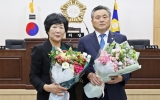 진도 온라인뉴스팀2024. 06.26[뉴스앤저널]진도군의회가 지난 25일 제297회 진도군의회 임시회를 열어 제9대 후반기 원 구성을 확정했다. 제1차 본회의에서 후반기 의장단 선거를 실시해 의장에 박금례 의원, 부의장에 이문교 의원을 각각 선출했다. 7명 의원 전원이 참여한 이번 선거에서 의장과 부의장 선출이 모두 만장일치로 이루어져 제9대 후반기 의정의 협치와 화합이 더욱 기대되고 있다. 의장에 당선된 박금례 의원은 “동료의원 여러분과 군민 여러분의 기대와 믿음에 부응할 수 있도록 막중한 책임감을 갖고 의정활동에 임하겠다”며 “의원 모두의 역량을 모아 군민...