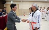 광산구 온라인뉴스팀2024. 06.20[뉴스앤저널]박병규 광산구청장이 20일 광산구보건소에서 진행된 ‘으라차차 건강 태권도’ 통합 승급심사 현장을 찾아 전원 승급에 성공한 참여 어르신들과 기쁨을 나눴다. ‘건강 태권도 교실’은 지역 어르신의 신체적, 정신적 건강 증진을 위해 광산구가 진행하고 있는 건강 프로그램으로, 2022년 시범사업 이후 확대돼 현재 더불어락노인복지관을 비롯한 복지관 3개소에서 운영 중이다.